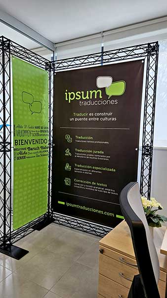 Desde pequeñas piezas como banners, roll ups, photocalls… hasta pantallas para proyección de presentaciones, técnicos de video, luz y sonido,…